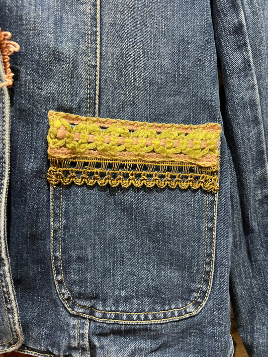 Upcycled Denim Blazer With Vintage Trims